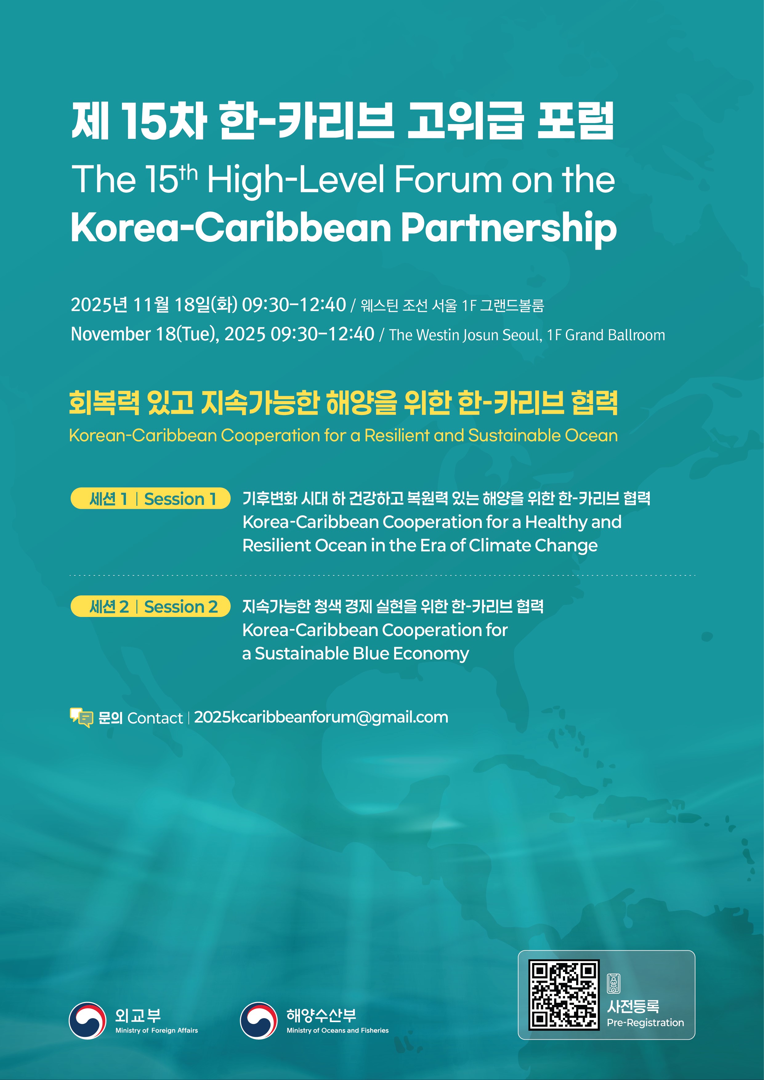 2025 제15차 한-카리브 고위급 포럼이 11월 18일 개최됩니다.